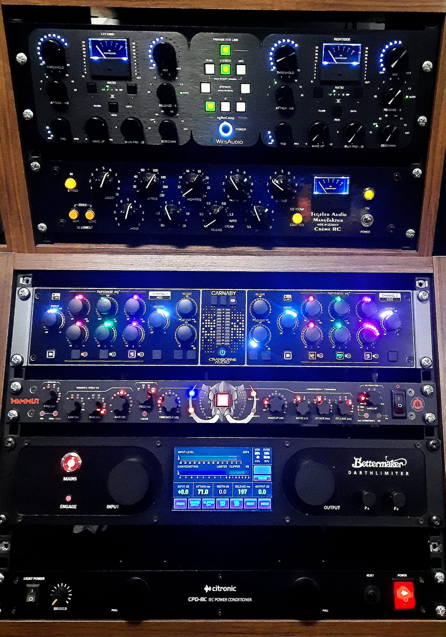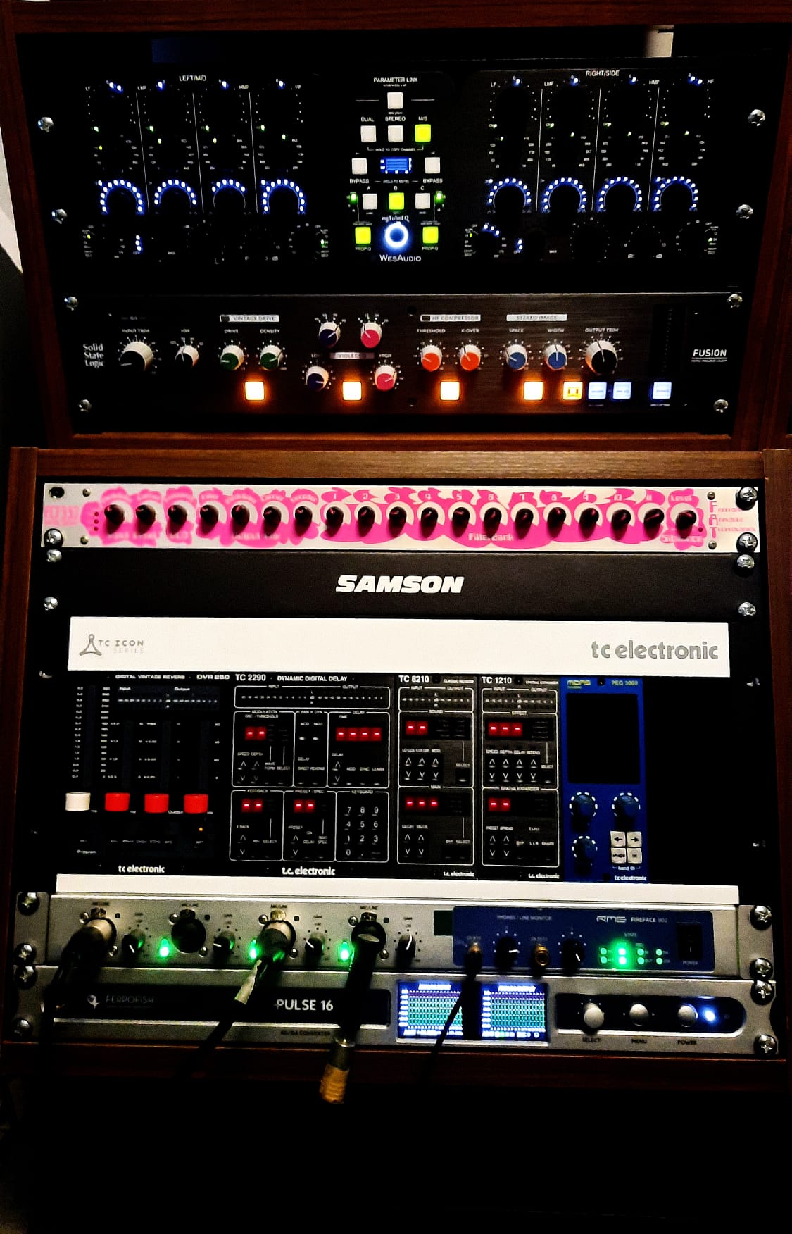 Most of the rack is recallable, which makes it easy to return to cues and keep things consistent across revisions. The setup continues to change and grow over time, but it’s always treated as a final hands-on step — a way of refining what’s already there, not reinventing it.