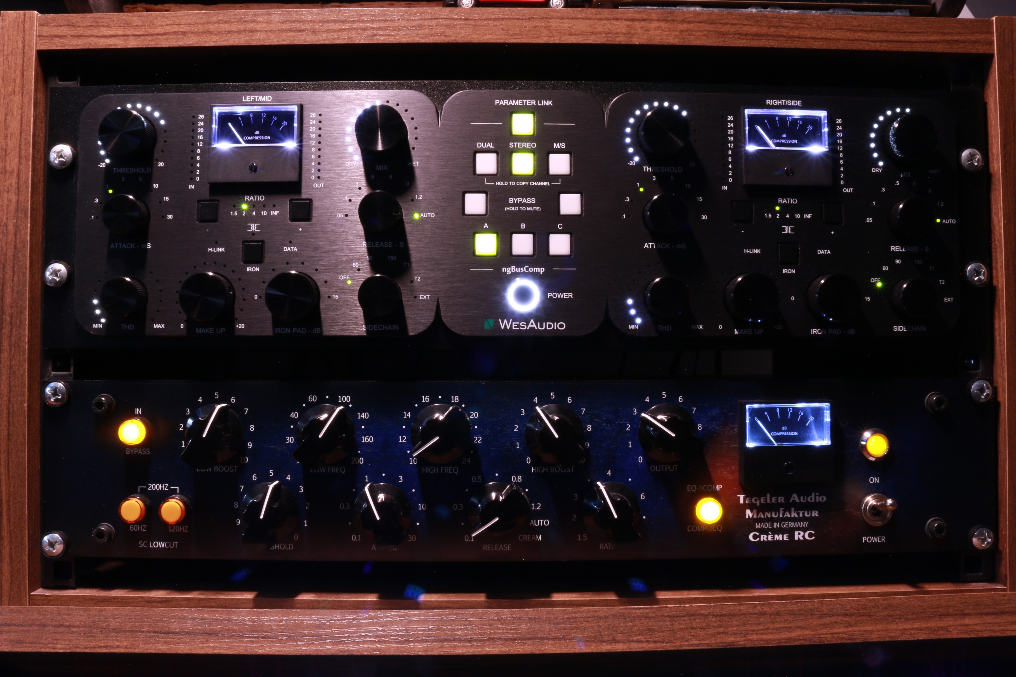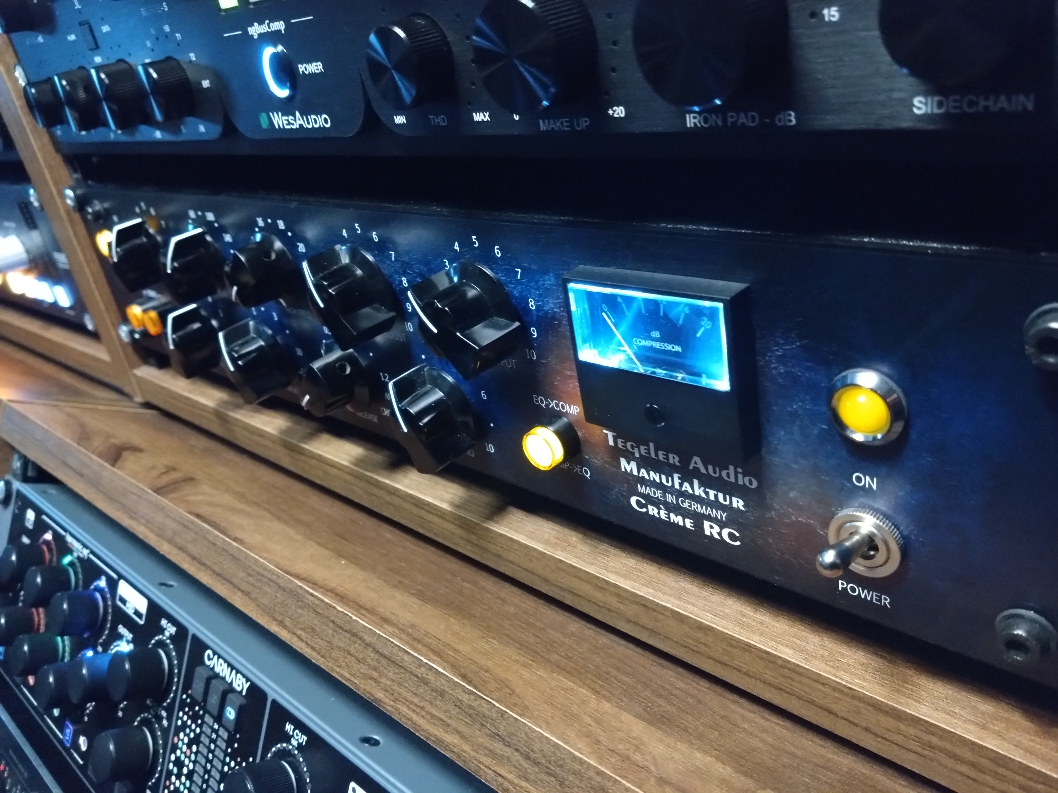 The last stage of James’ production process runs through a dedicated analogue mastering rack. It’s part of the everyday setup rather than something reserved for special cases, and it’s used to gently shape tone and balance before music is finished.